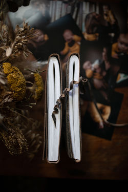 *Een gedrukte leren album - digitaal ontworpen en door een drukker gedrukt album óf door mij handgemaakte en handgeplakte leren album - album met daarin beste kwaliteit foto afdrukken die ik met de hand op maat snijd en inplak. Dit is ook een fotoalbum waar je een persoonlijk berichtje naast de foto's kan opschrijven: ik weet zeker dat dit later gewaardeerd wordt. De voorkant gepersonaliseerd met jullie naam en/of datum. Bekijk hieronder bruidsalbum voorbeelden.